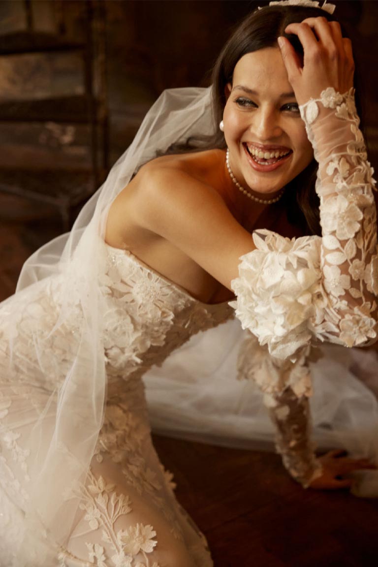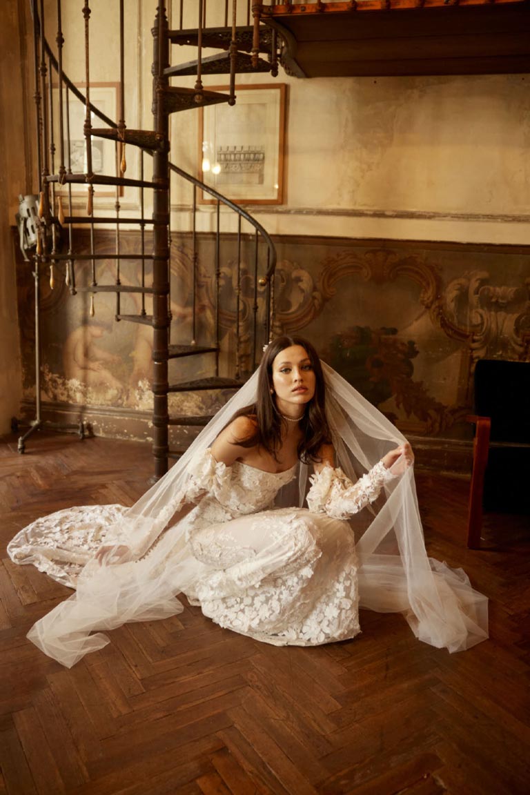 Adorned with the delicate flowers which make the Venessa gown, our Venessa veil is the accessory to complete the sophisticated ensemble.
